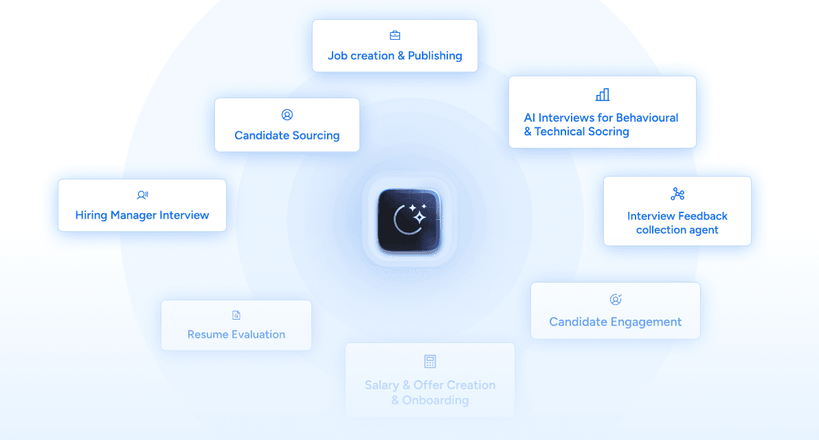 AI agents automate scheduling, take notes during hiring rounds and collate candidate feedbacks so that you never miss any signals.